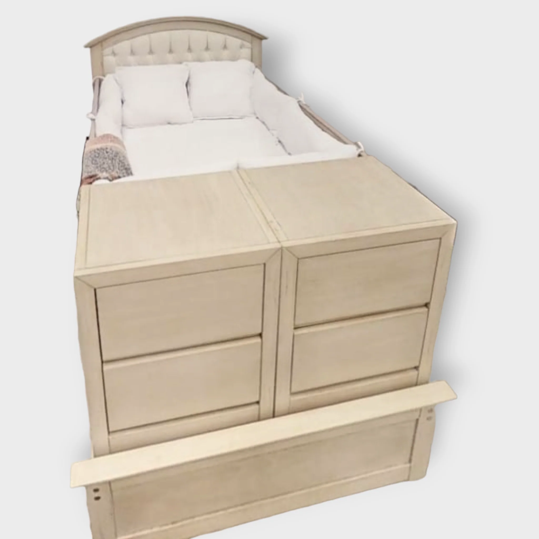 En esta etapa se retiran los 2 buros de enfrente y los barandales para posteriormente convertir la cuna en una cama juvenil con dos cajoneras a los lados.
